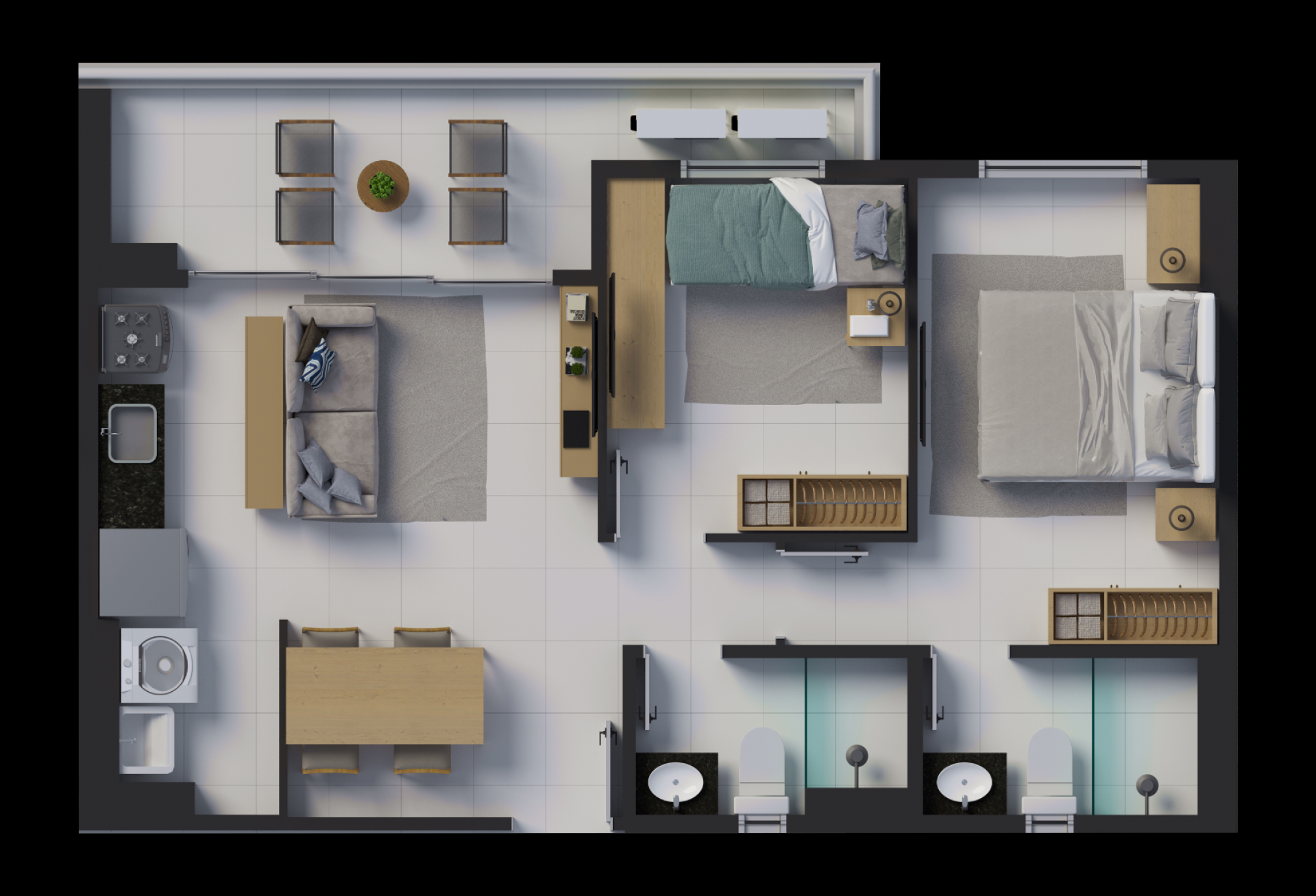 2 quartos e 3 quartos (com suíte)